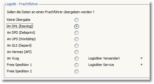 Wählen Sie hier den Logistiker "DHL (EasyLog)".